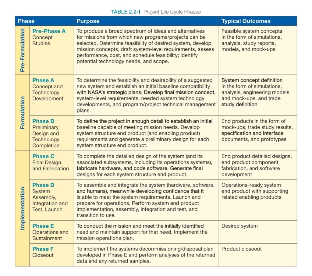 One exemplary resource is NASA’s Systems Engineering Handbook, which details the agency’s approach to project management and LCM adaptation for different tasks. I highly recommend this handbook to engineers and students alike for its invaluable insights into NASA’s LCM methodologies. Below are some images from the handbook, illustrating their thought processes regarding LCM: